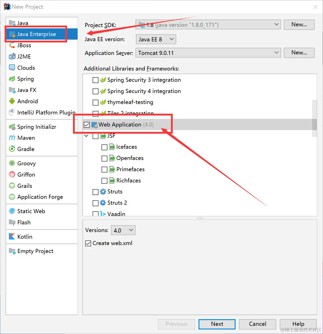 左侧导航栏点击Java Enterprise 然后在右边的项目里选择Web Application