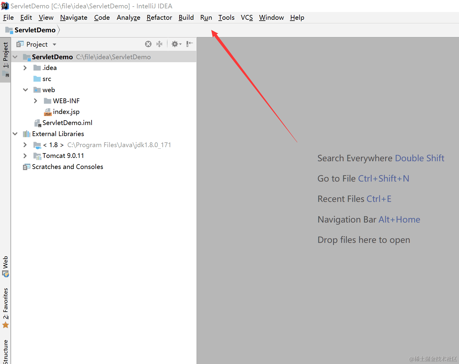 注意右上方的SDK和Tomcat信息,如果没有的话自己选择一下对应的目录,一般是idea会自己找到这两个目录的