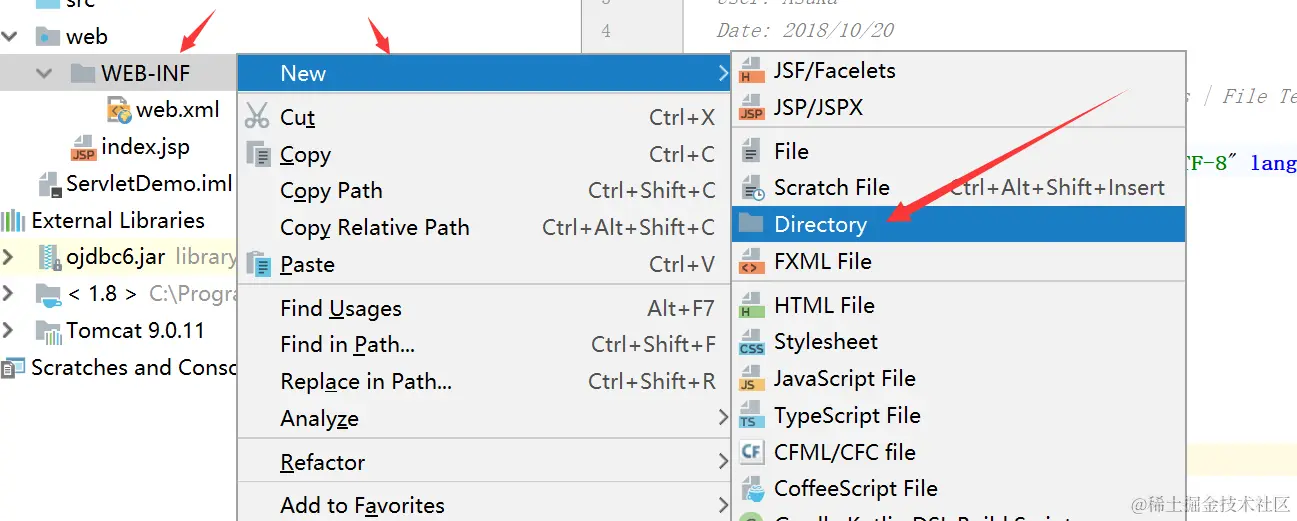 回到项目中,右键点击WEB-INF,在该文件夹里面新建两个文件夹