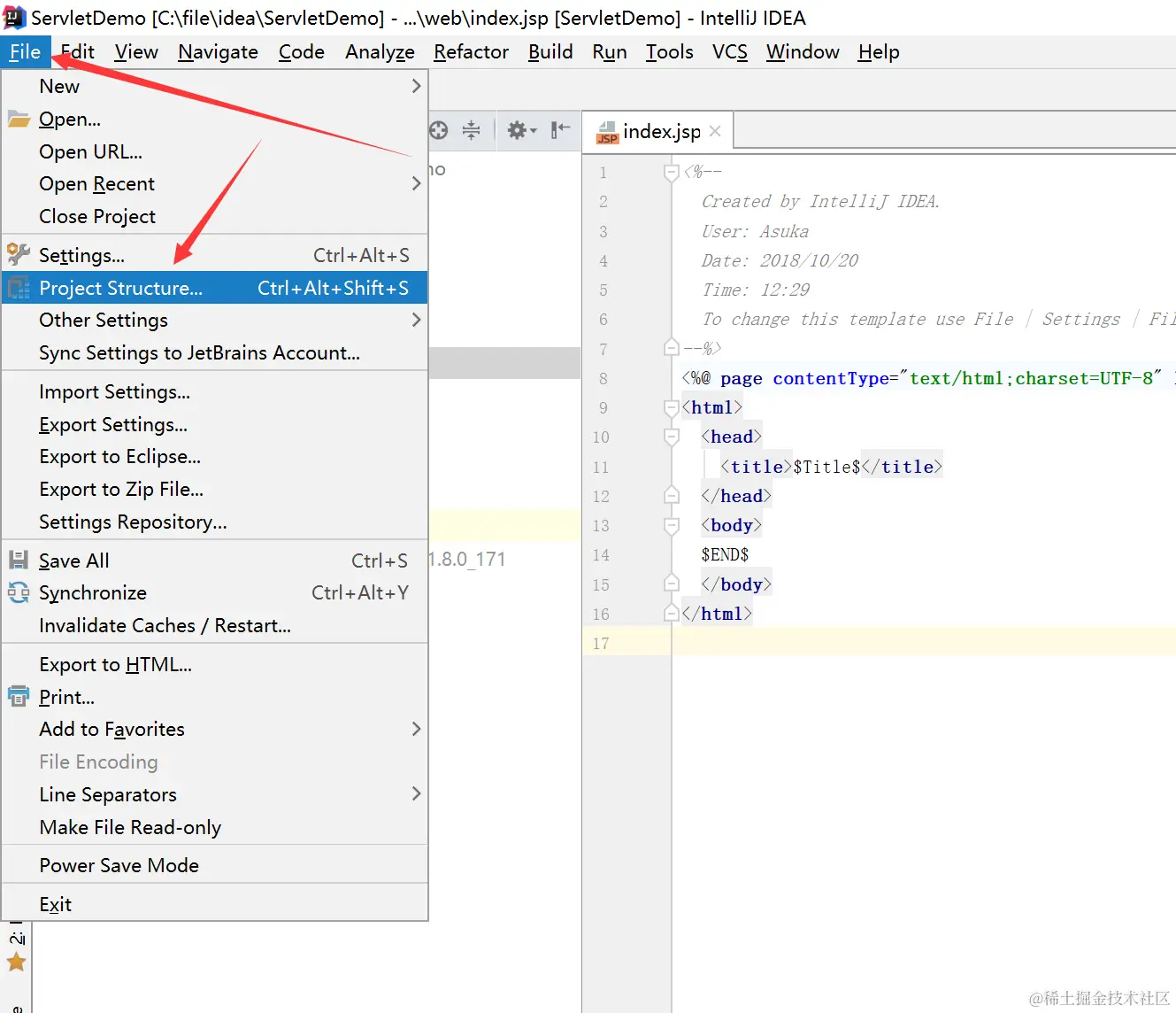 再依次点击file和project Structure