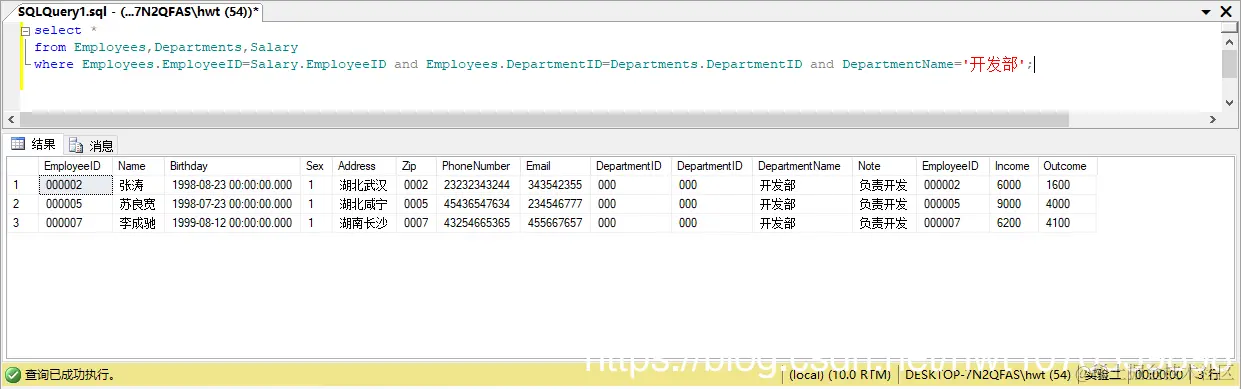 where Employees.DepartmentID=Departments.DepartmentID and DepartmentName='开发部';