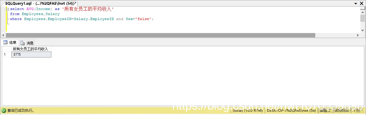 select AVG(Income) as '所有女员工的平均收入'
