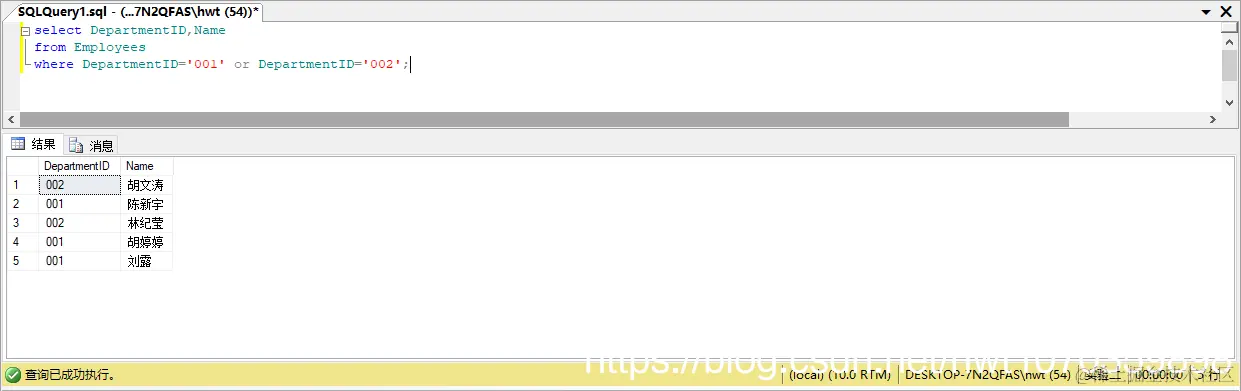 where DepartmentID='001' or DepartmentID='002';