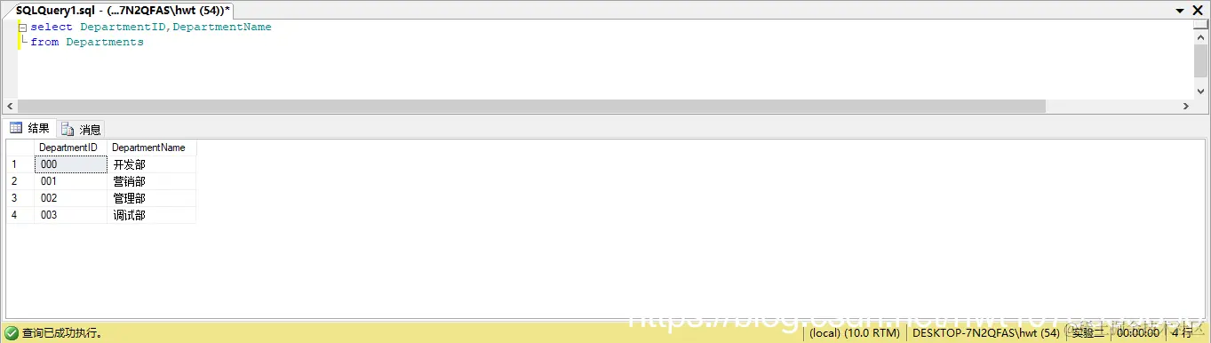 2、查询Departments表中的所有记录。