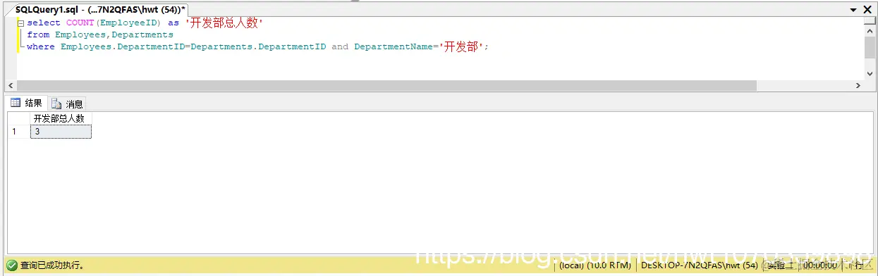 select COUNT(EmployeeID) as '开发部总人数'