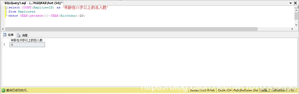 select COUNT(EmployeeID) as '年龄在岁以上的总人数'