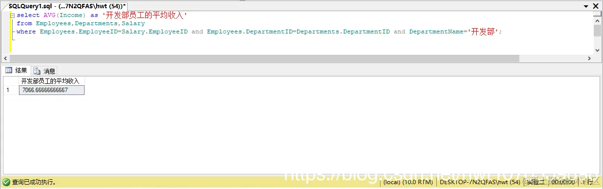 2、求开发部员工的平均收入。