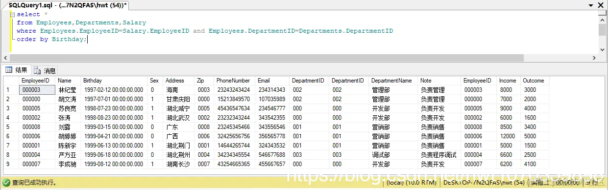 where Employees.DepartmentID=Departments.DepartmentID and DepartmentName='开发部' and Birthday