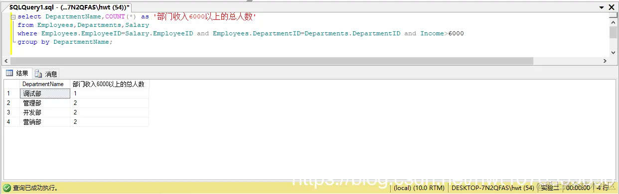 select DepartmentName,COUNT(*) as '部门收入以上的总人数'