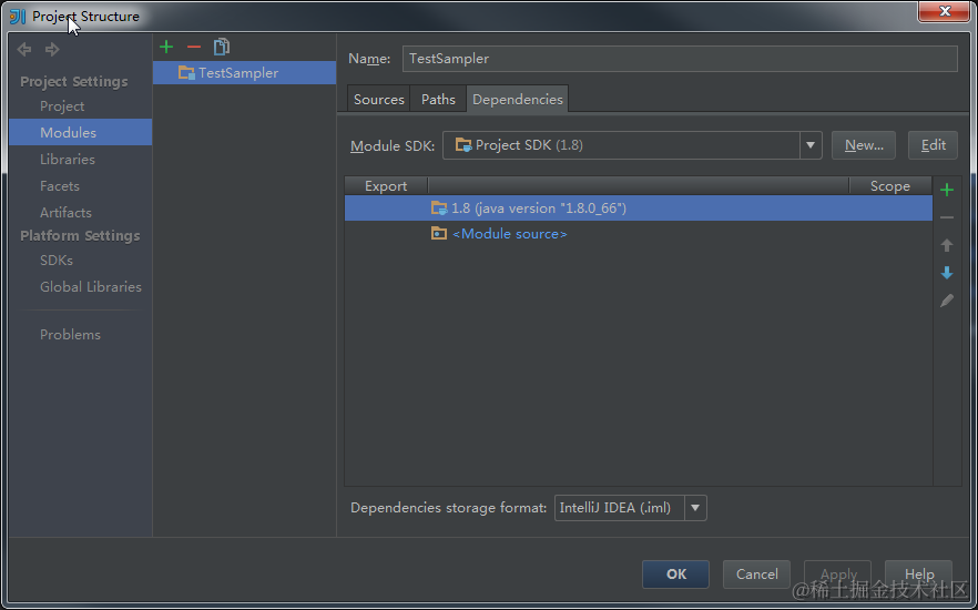2、点击 File -> Project Structure(快捷键 Ctrl + Alt + Shift + s),点击Project Structure界面左侧的“Modules”如图: