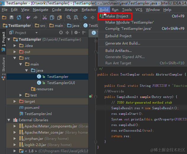 3、菜单:Build->make project,注意这里可能会报编译错误,最好提前检查一下编译器版本:File>Settings>Java Compiler,修改Target bytecode version版本为1.8,另外项目版本Project Structure-Project/Modules版本改为1.8