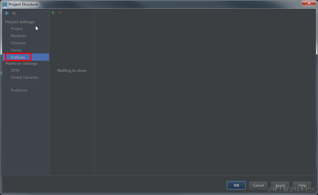 1、点击 File -> Project Structure(快捷键 Ctrl + Alt + Shift + s),点击Project Structure界面左侧的“Artifacts”如图: