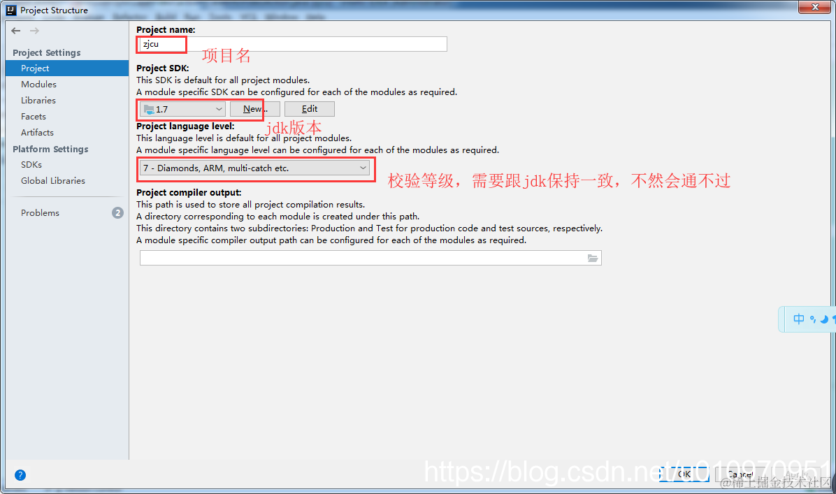 4.1配置project,特别注意language level,编译不通过很多情况是level跟jdk不对应