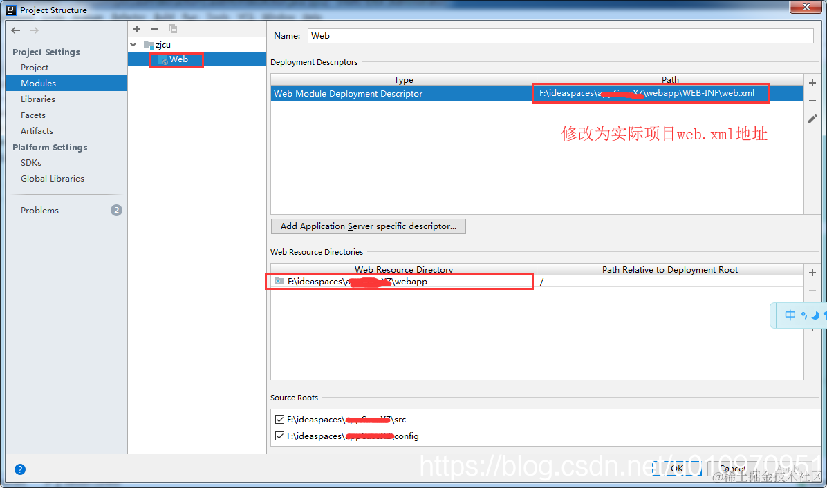 点击上方的+号,新建一个web,并将右边二处配置修改为项目实际路径。