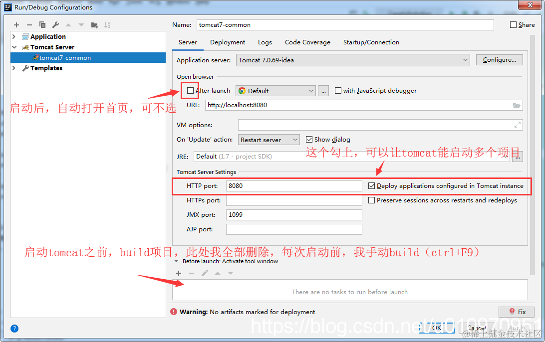 刚才的run Configurations中,选择刚才添加的tomcat。并且完成基本配置(根据选择自行勾选)
