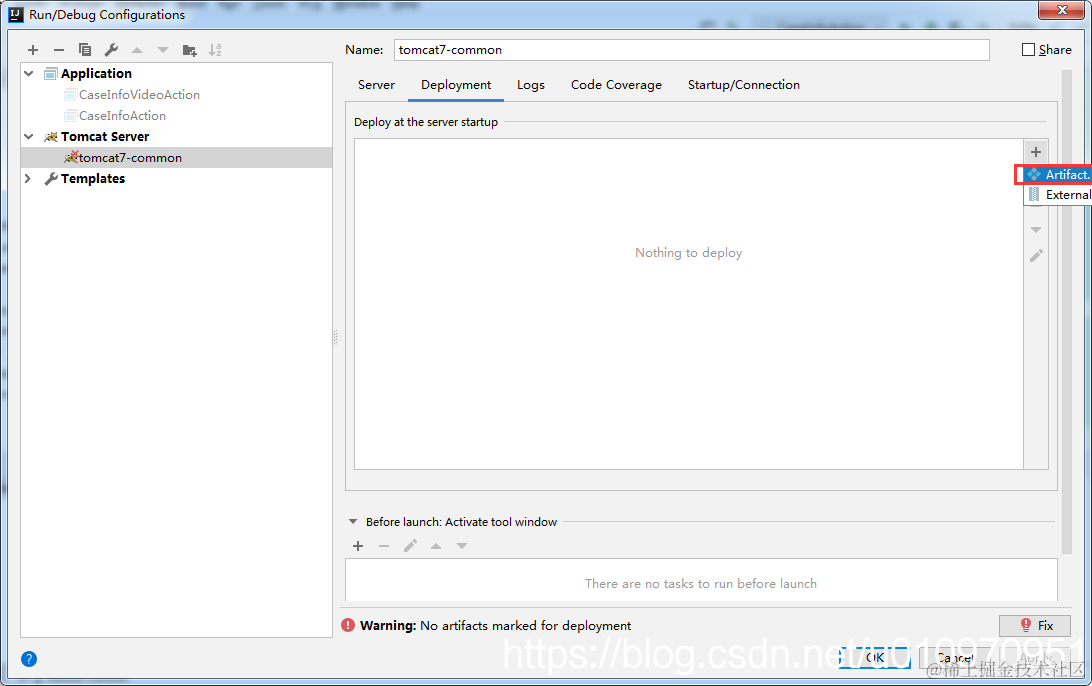 选择Deployment,添加第4步配置好的artificets。