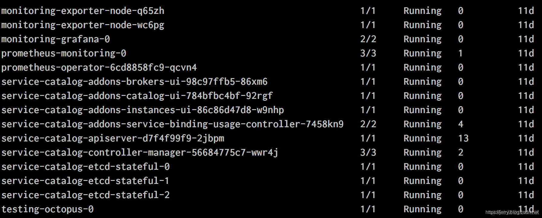 service-catalog-etcd-stateful-1 1/1 Running 0 11d