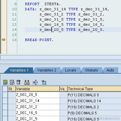我在SE11里面建了几个data element, 分别是DEC length31 , decimal place为14,2,5的, 在debugger里面前三个都是p(16)