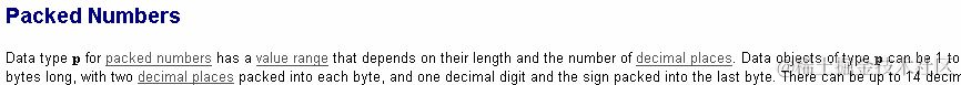 with two decimal places packed into each byte. ----每两个decimal places占用一个byte, 然后decimal的小数点’.'和符号位占用一个byte.因此最后的结果是: