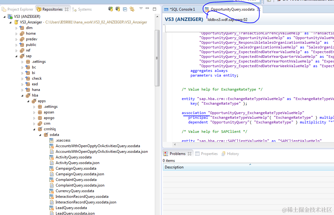 然后在HANA studio里是使用SAP HANA development perspective。
