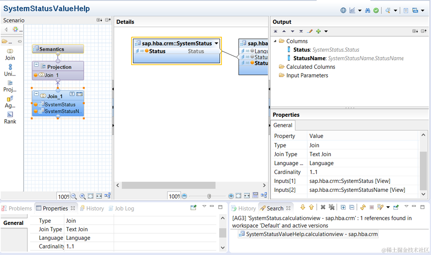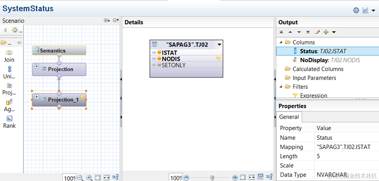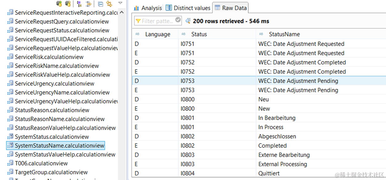 因此,HANA studio里相关的model 只针对system status建模,并未包含user status。这个我们的scenario有所差异。