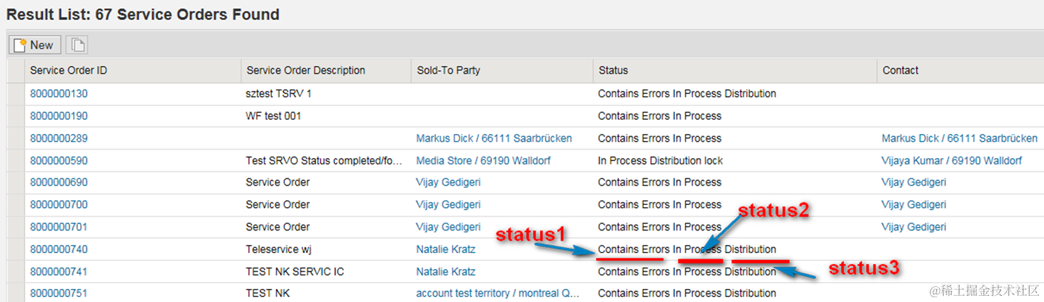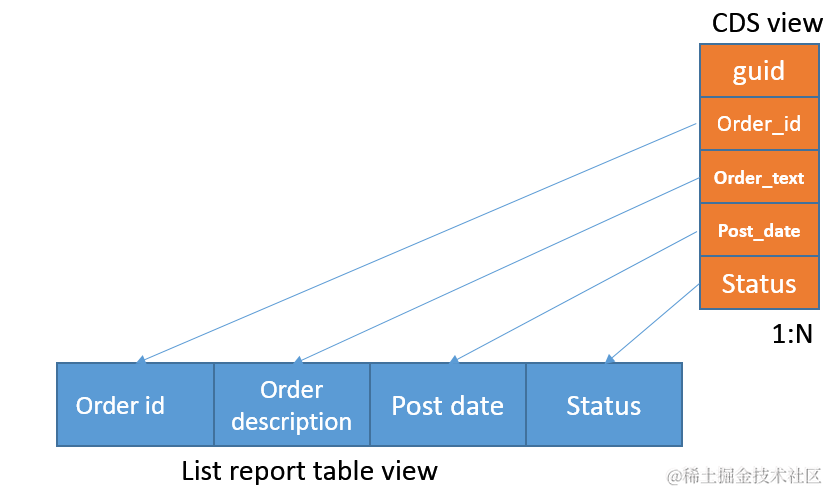 - 在Smart template的list report页面里,list report 里的table column和CDS view 里的field都是一一对应的,1:1的关系。但是现在由于CRM里order status的design,一个order可能拥有N个status。