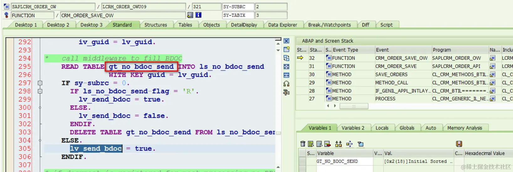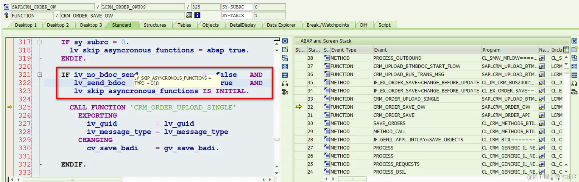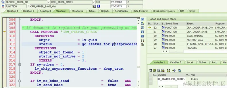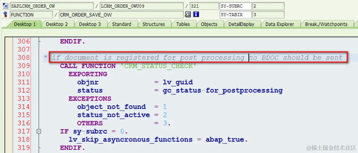 (1) CRM_ORDER_SAVE call line 56行的CRM_ORDER_SAVE_OW时,IV_NO_BDOC_SEND没有指定value,所以传进来的是默认值ABAP_FALSE,