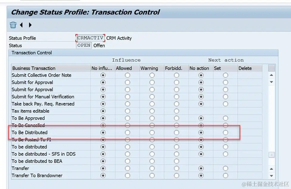 但是我们现在的ZSRV上没有配任何status profile… 这个to be distributed即使设成Forbidden一样会发, 下图是我测试的status profile,配在AG9的ZSRV上。