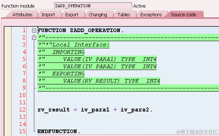 The function module being exposed as web service looks like below: