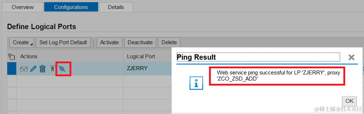 Click the ping button to ensure the logical port works correctly: