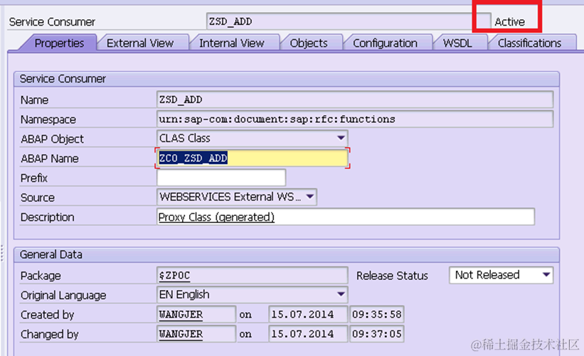 - search the just created consumer proxy ZCO_ZSD_ADD in SOAMANAGER: