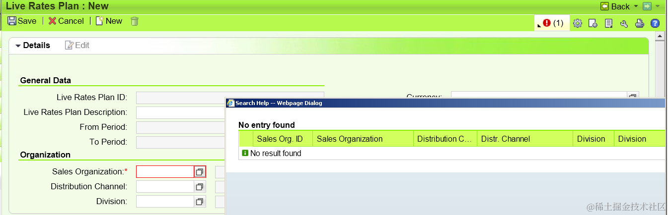 在Live Rates Plan creation时仍然无法自动带出assign的Sales Org: