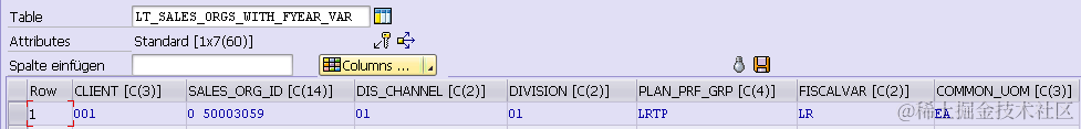 通过debug找到对应的customizing table: