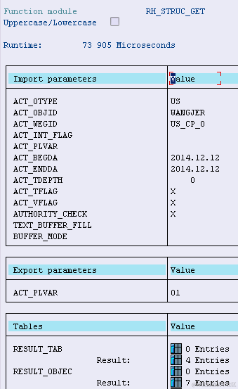 如何使用FM RH_STRUC_GET获得user assign的Organization unit 已注销 2021-04-25 95 阅读1分钟 Created by Jerry Wang, last modified on Dec 15, 2014 使用如下查询条件: ( path value table: T778A , US_CP_O means Organizational Assignment User (also via central person) ACT_OBJID = central user name ) 执行结果: 对比UI上搜索结果: \ 要获取更多Jerry的原创文章,请关注公众号"汪子熙":