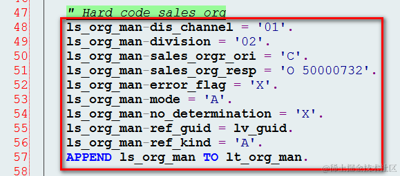 1. hard code sales organization信息如下: