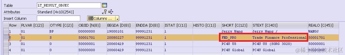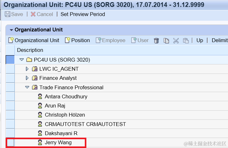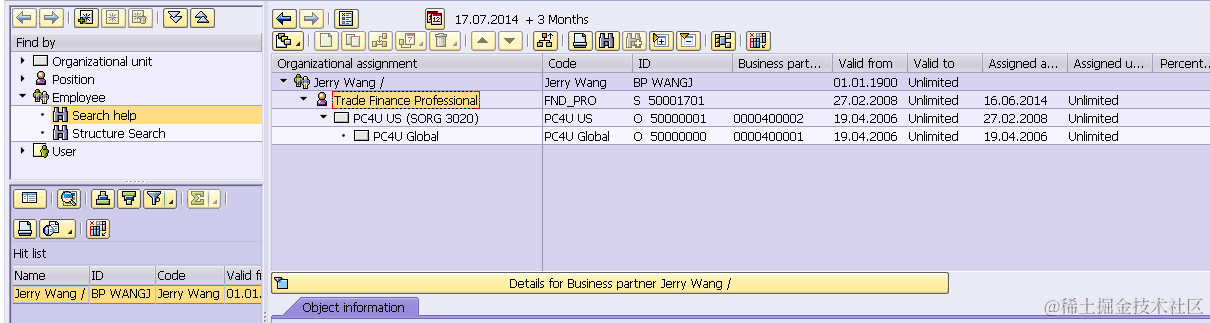 例如通过UI上查找employee ID WANGJ,点击查询结果里的hyperlink: