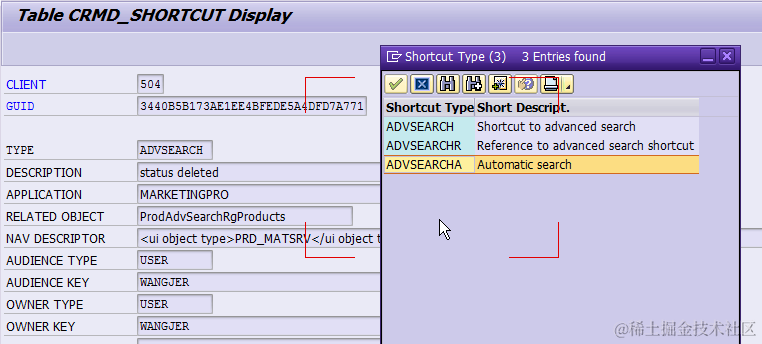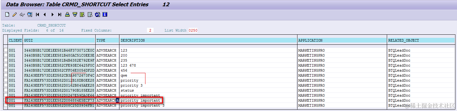 If you create several queries and mark one of them as "Default Search" in personalization, then this entry will be marked with type ADVSEARCHA ( "Automatic search") in the DB table: