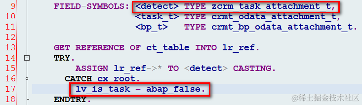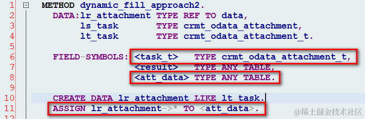 a. 在line 10~11 动态assign一个field symbol
