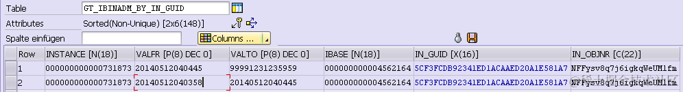 Screenshot 3 # My correction proposal As you see, in screenshot2 the valfr and valto are exactly the same timestamp, because the creation and deletion of the same IBASE component occurred within the same second.