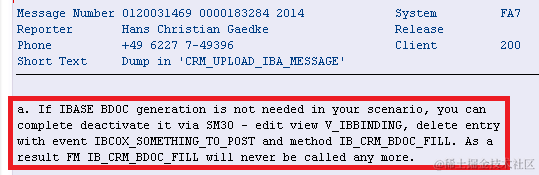 when we create a new IBASE component via IBASE API and then delete it via FM CRM_IBASE_COMP_DELETE in the same session and then save the transaction, then we meet the exception. The issue could be easily reproduced by running report ZTEST_IBASE_CREATE_DELETE1 in CRM713 sandbox system HAM/504 with WANGJER/Sap12345. Just specify an object ID which does not exist in the system yet, the report will create a new object automatically.