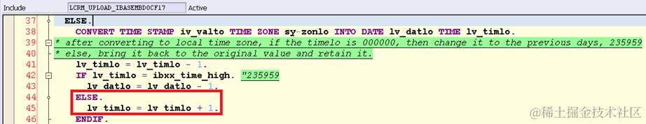 After I finished this change in HAM/504, there is still the same exception occurred. The reason this time is because the check fails in line 54 instead: the lv_timlo is subtracted by 1 second from iv_valto.