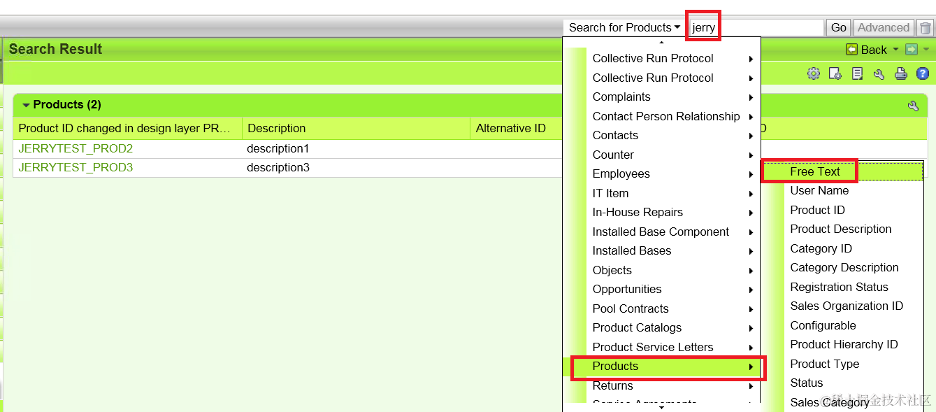 在UI的右上角,你选择Products-> Free Text之后,一样可以在右上角trigger search,得到的结果和你处理ticket里面的scenario是一样的。