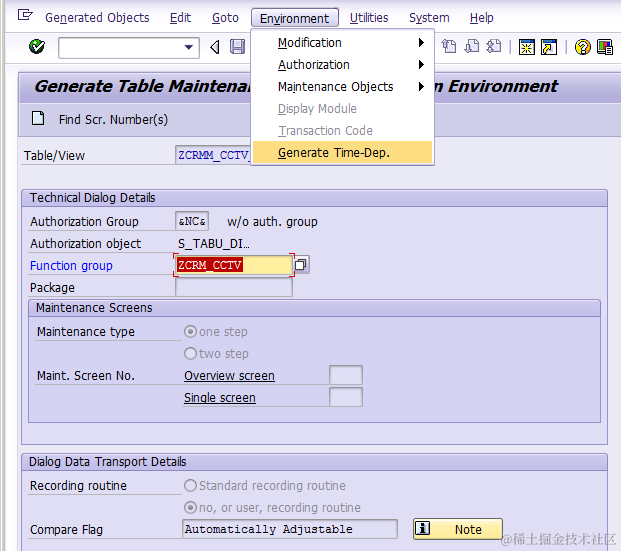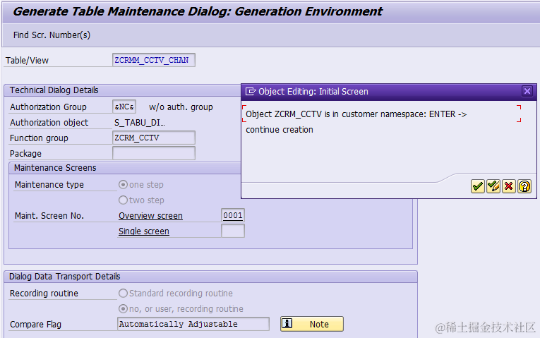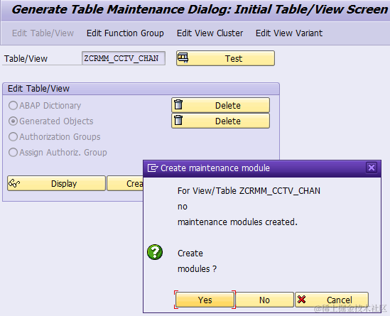 Step2: go to tcode SE54, choose “Edit Table/View->Generated Objects”, then click create button: