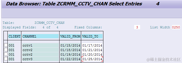 the entry with valid from = 01/19/2014 and valid to = 01/20/2014 will not be displayed by default.