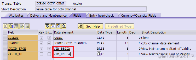 Step1: Create your transparent table as usual. The only special task is to include two additional fields for start and end date. Use predefined VIM_BEGDA and VIM_ENDDA.