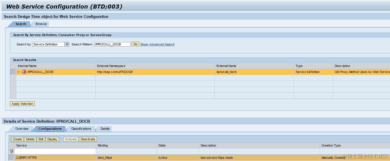 - create a new service based on service definition /IPRO/CALL_DOCB: