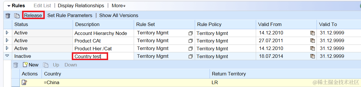 maintain a rule description and click Release button: