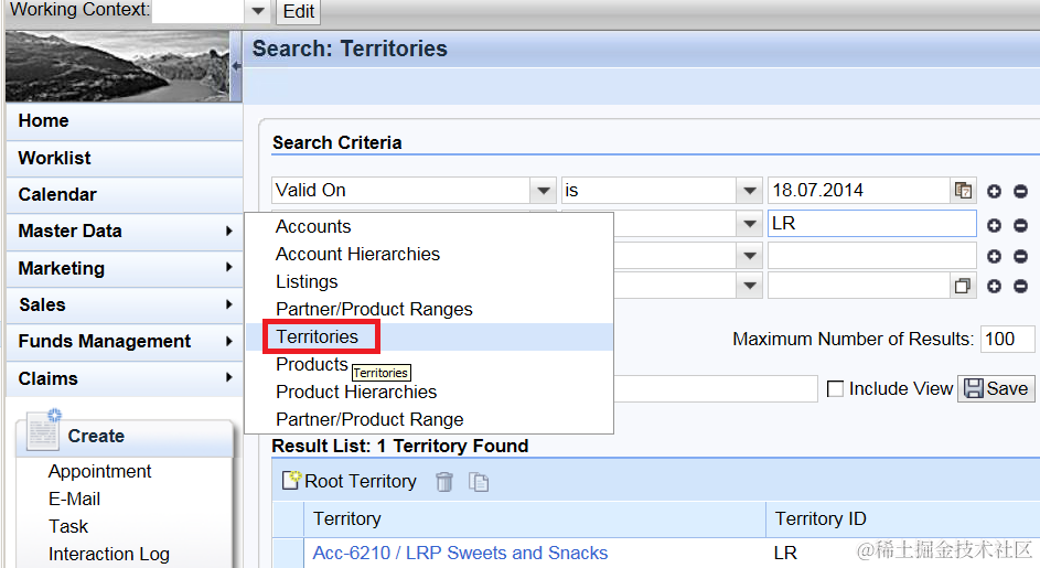 - log on system with business role TPM_PRO, search out one Territory: