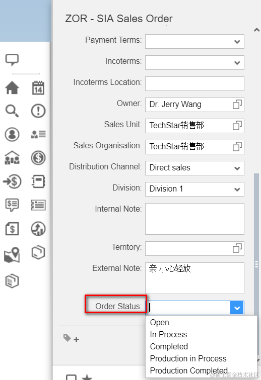 Now go back to Sales Order TI page, the extension field is set as 4 - Production in Process as expected.