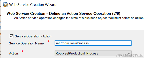 First I try to create a new Custom OData service, and would like to bind my custom action setProductionInProcess to a OData function import: